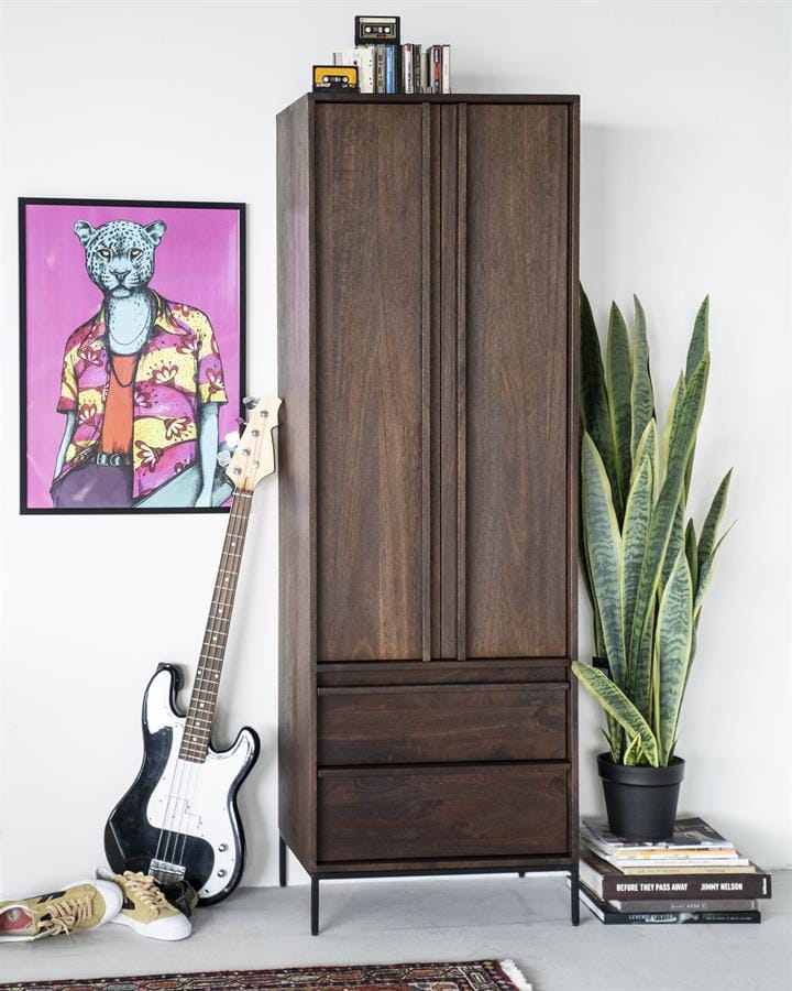 Prachtige wandkast met een uniek decor met zwart metalen accenten. Leverbaar in diverse kleuren.
